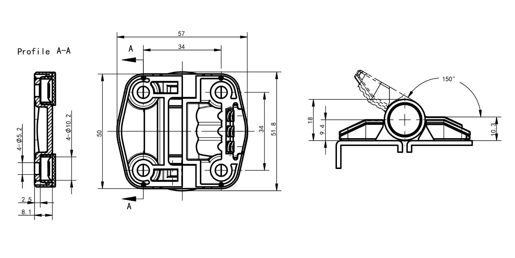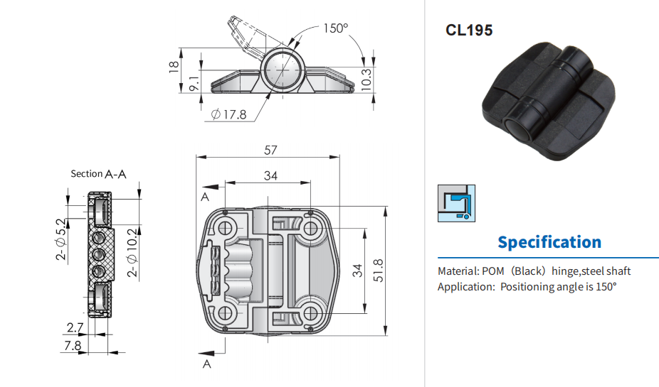 Vật liệu: thân bản lề nhựa POM, trục quay Q235